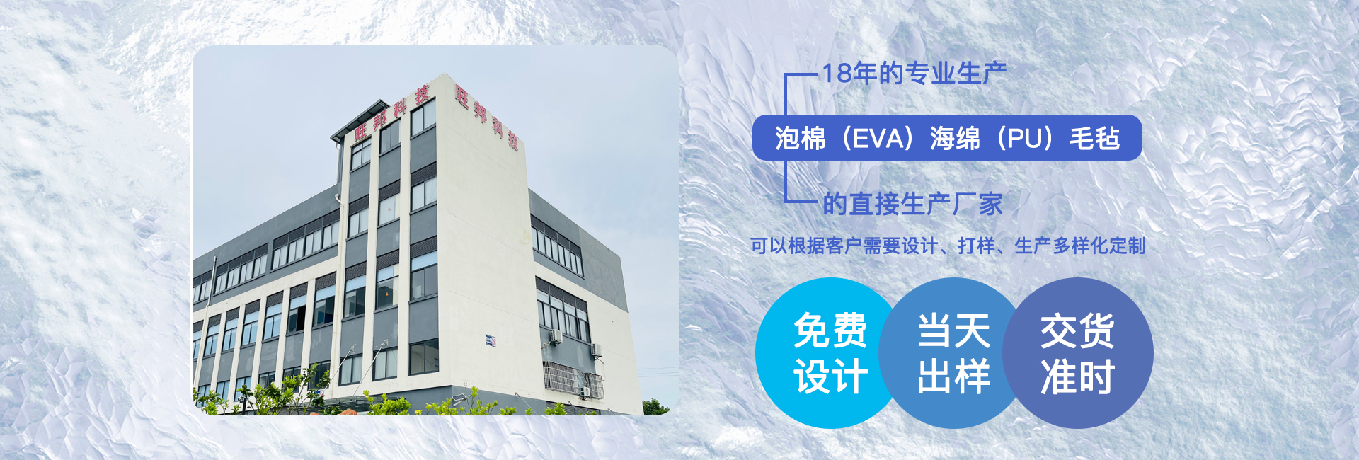 2021-02-0118年專(zhuān)注于生產(chǎn)泡棉(EVA)、海綿(PU)、毛氈等塑粘制品
